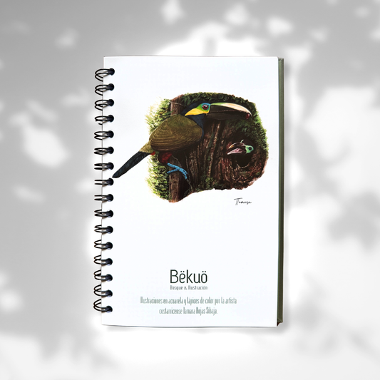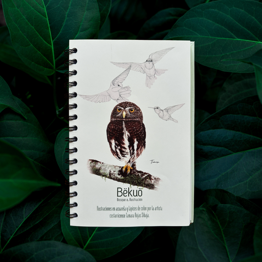 Cada libreta de tapa dura incluye un texto exclusivo sobre la historia natural de la especie ilustrada, escrito especialmente para Bëkuö por el guía naturalista y educador ambiental Jose Pablo Castillo, una voz apasionada en la conservación de aves en Costa Rica.