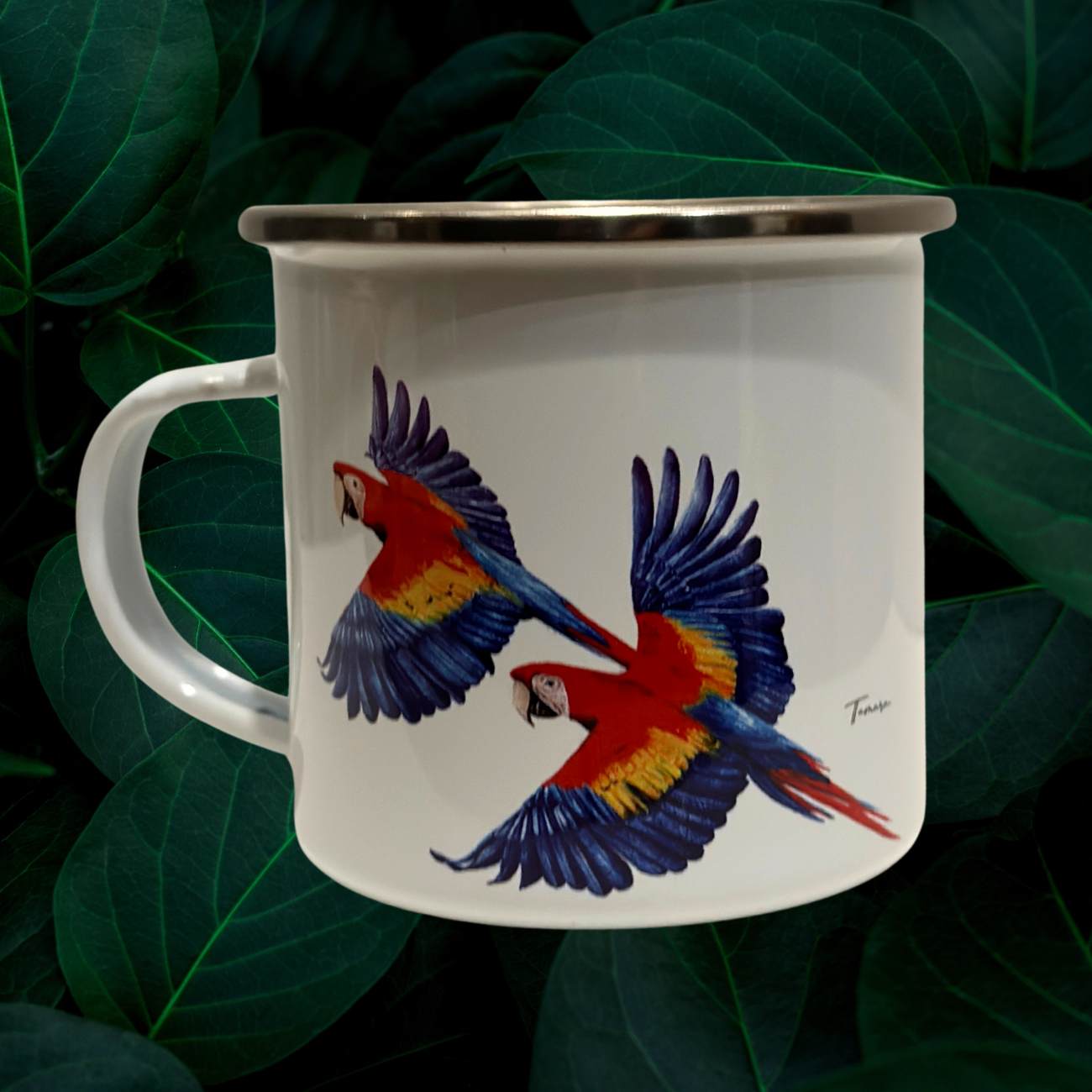 Disfruta de los diseños hechos a mano por la artista Tamara Rojas Sibaja. Estos jarritos son ideales para las bebidas calientes el cafecito de la tarde o un té, son muy practicas para llevar al bosque ya que son livianas y resistente.
