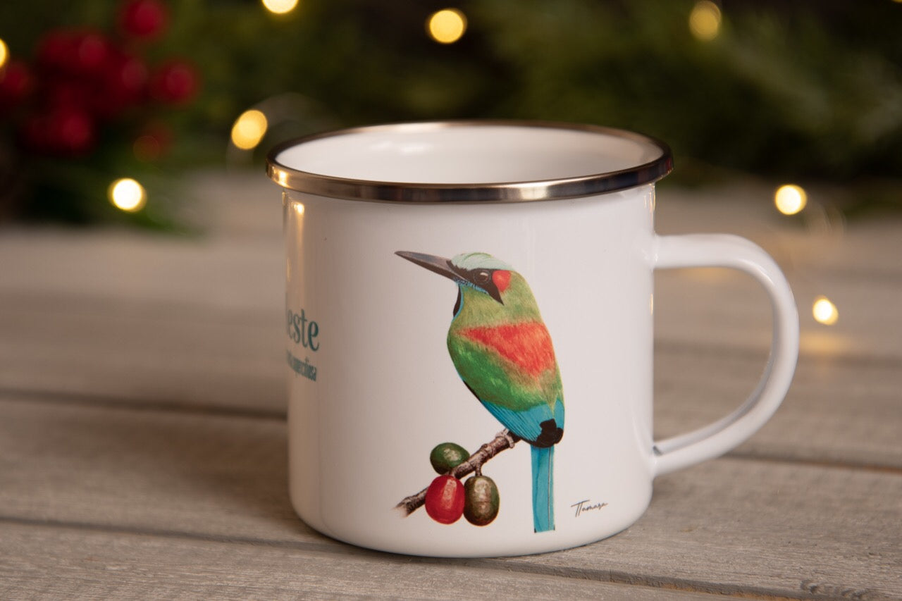 Disfruta de los diseños hechos a mano por la artista Tamara Rojas Sibaja. Estos jarritos son ideales para las bebidas calientes el cafecito de la tarde o un té, son muy practicas para llevar al bosque ya que son livianas y resistente.