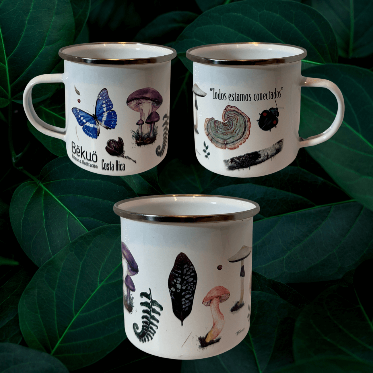 Disfruta de los diseños hechos a mano por la artista Tamara Rojas Sibaja. Estos jarritos son ideales para las bebidas calientes el cafecito de la tarde o un té, son muy practicas para llevar al bosque ya que son livianas y resistente.